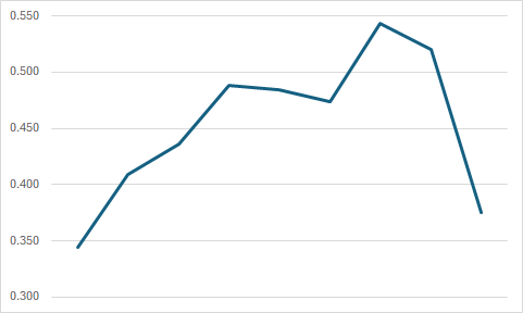 By his fourth season, Jaylen got that percentage up to .488, and then stayed consistent at .484 and .474 in the Eastern Conference championship season of 2021-22. Then it kicked up a notch. The past two seasons, he hit more than half of those midrange jumpers, making it one of the most valuable weapons in the game. This season though? He's shooting so poorly he's nearly back to how he shot from there in his rookie season.