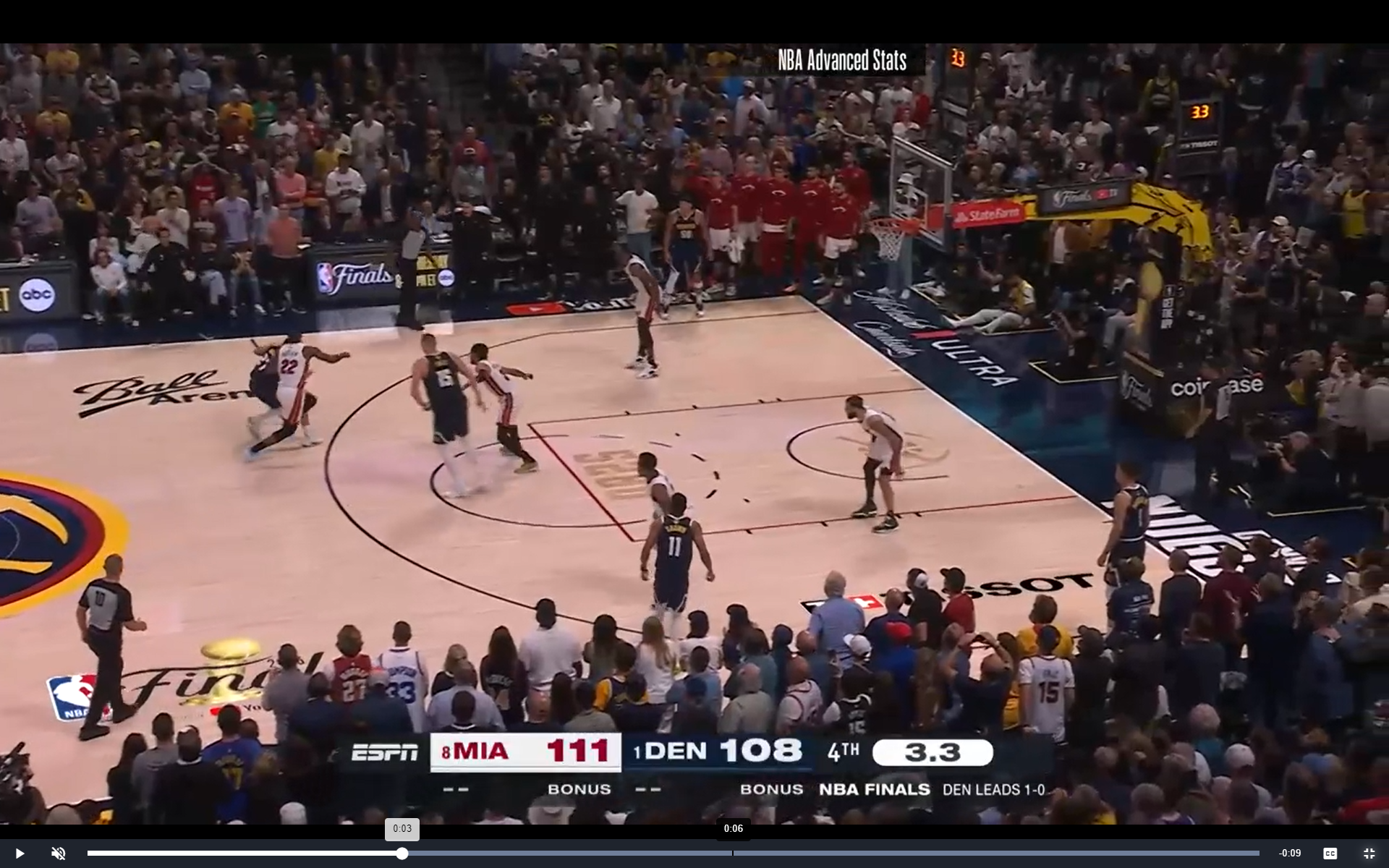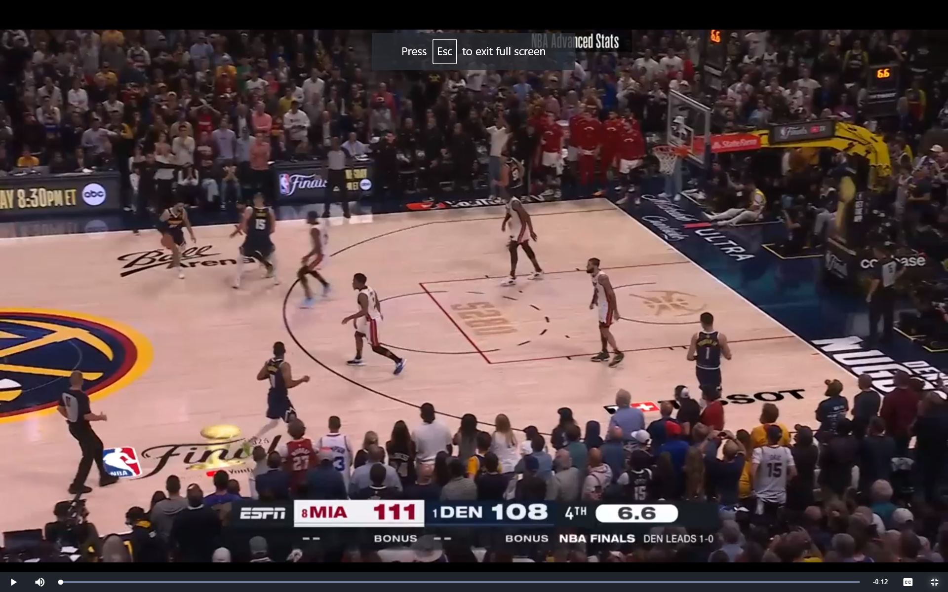 The great Tom Ziller broke down the Heat's Game 2 fourth-quarter offense in his newsletter today, and his newsletter is well worth your time today and every day. I wanted to focus on one snapshot of the game, because I can't believe Miami's opponents keep doing these things. Before we delve into it, I just want you to look at these two screenshots, and then we'll talk. This one is from 6.6 seconds left, and is the first frame of the video clip "MISS Murray 26' 3PT Step Back Jump Shot," ie the last shot of the game:
