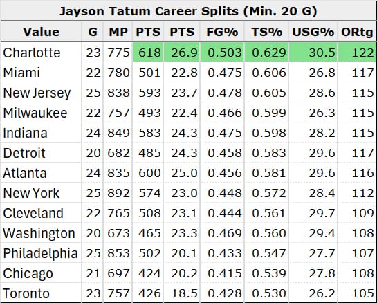 Jayson Tatum is an excellent basketball player. If you are a close follower of the Celtics, you know that one of the teams that he's always been the most excellent against is the Charlotte Hornets. To wit: