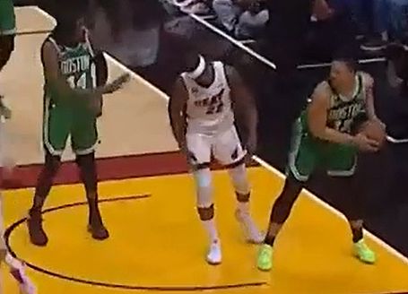 Jayson Tatum hung with Gabe Vincent in the corner and got enough of the shot to pop it straight into the air and turn it into a jump ball. Only Vincent jumped for it, because Tatum's momentum carried him out of bounds, and Vincent hurt himself skying for the ball, as he rolled his ankle when he landed. Vincent would come back into the game after a short trip to the locker room, but Reggie Miller – a guy who knows a thing or two about turning ankles – seemed very concerned. It's worth monitoring ahead of Game 5.