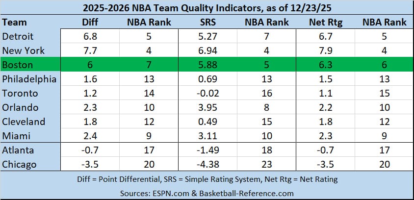 The C's have piled up these wins in a frankly real manner. They have played the most games against the other above-.500 teams thus far, and the three statistical indicators I look at all see the C's as a top-10 team in the NBA this season: